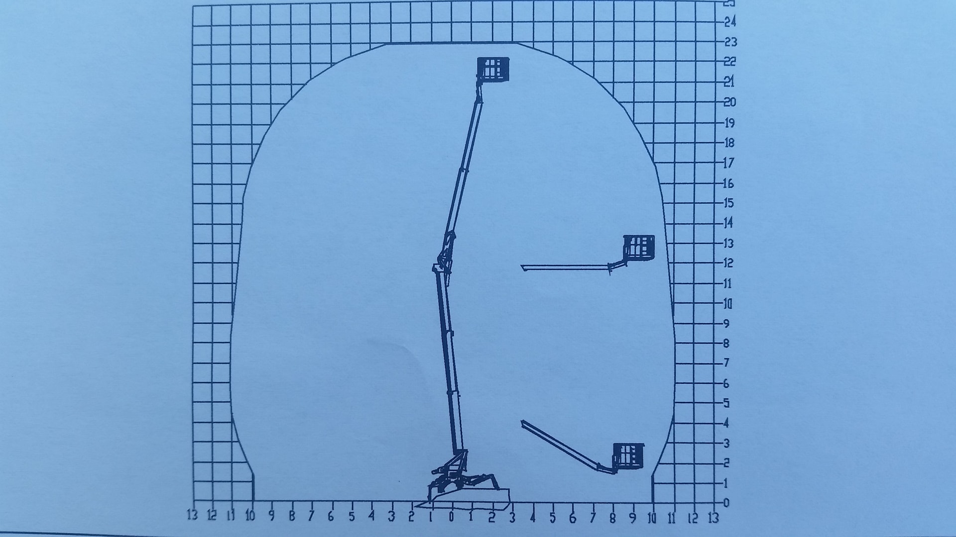 maximale seitliche Arbeitsreichweite 8,7m ab Stützenende